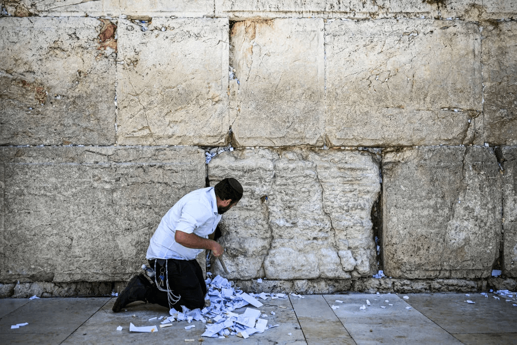 - Cleaning cracks – A worker on Tuesday morning cleaned the cracks of the Western Wall and removed stuffed paper notes scribbled with prayers. It’s a twice-a-year ritual, before Rosh Hashanah and before Passover. The notes — an estimated one million are left each year — are not read to respect people’s privacy, and are buried in the cemetery on Jerusalem’s Mount of Olives.