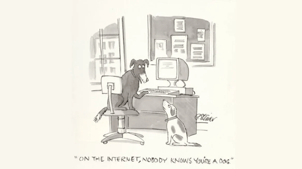 - Online anonymity reduces accountability and dehumanizes interactions. People seem to forget that there are real people with real feelings on the receiving end of harsh taunts and mean messages. This syndrome has a name – the “disinhibition effect” – which means people say and do things anonymously online that they would not normally say or do when their identity is known. Recall the famous New Yorker cartoon: “On the internet, nobody knows you’re a dog.”