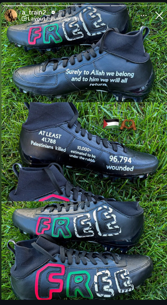 - Foul play? Football fans are still fuming about the late hit on Jacksonville Jaguars quarterback Trevor Lawrence during a Sunday game. The tackle — which knocked Lawrence out of the game with a concussion — prompted calls for the suspension of the tackler, the Houston Texans’ Azeez Al-Shaair. Online, pro-Israel activists piled on, outraged by Al-Shaair’s pro-Palestinian footwear. Yes, you read that right. Go deeper ►