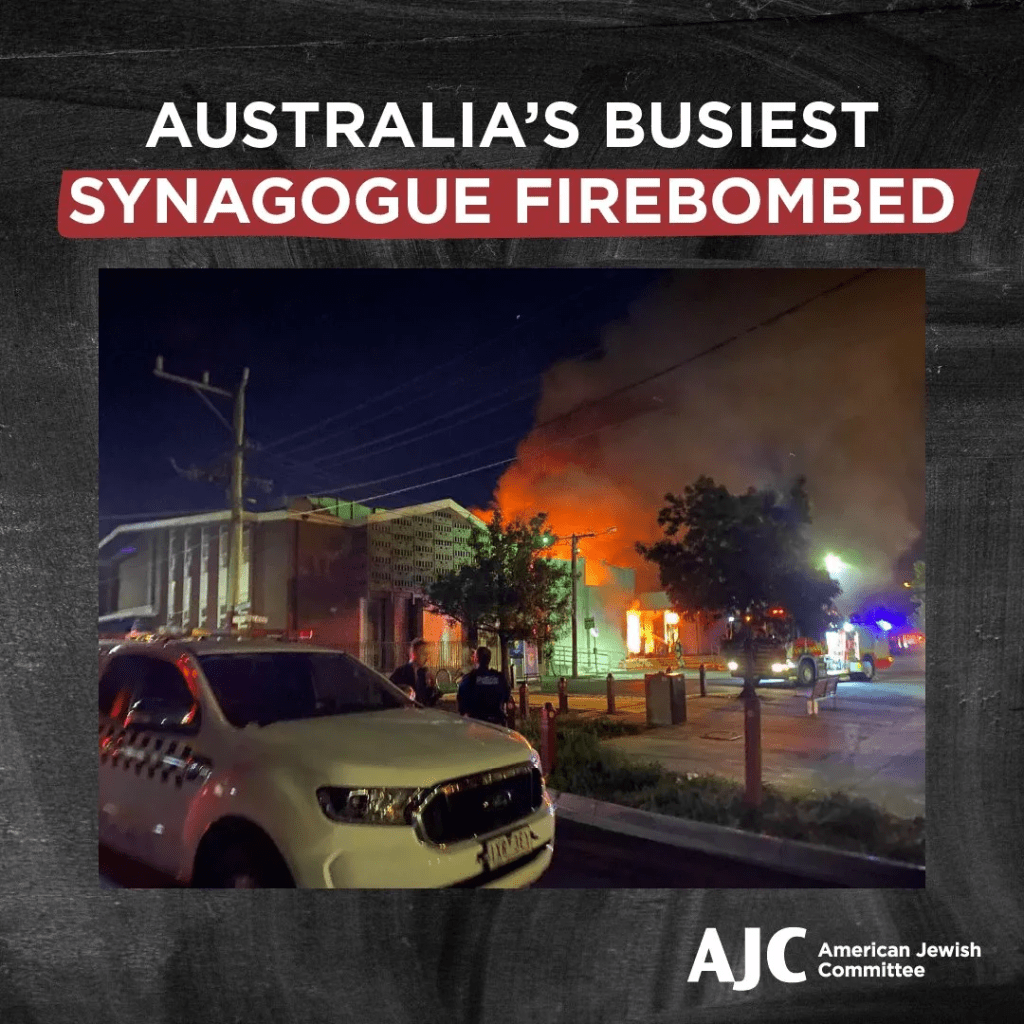 - Burning Torah scrolls in Melbourne Australia – A synagogue in suburban Melbourne, Australia, was set ablaze on Friday, causing congregants to flee and injuring at least one person. The fire before dawn on Friday at Adass Israel, a haredi Orthodox synagogue in the town of Ripponlea, sent congregants gathered for morning prayers into the streets at 4:10 a.m. Those who fled the fire reported assailants breaking windows and throwing firebombs into the building. The damage from the fire appeared to be extensive and was brought under control by 5 a.m. by a team of 60 firefighters and 17 trucks, according to The Age, an Australian publication. “I unequivocally condemn the attack on a Melbourne synagogue early this morning,” Prime Minister Anthony Albanese said in a statement. “I have zero tolerance for antisemitism. It has absolutely no place in Australia.” Would be nice if Albanese backed up the rhetoric with some action, as anti-semitism is running rampant in Australia, as it is around the world.